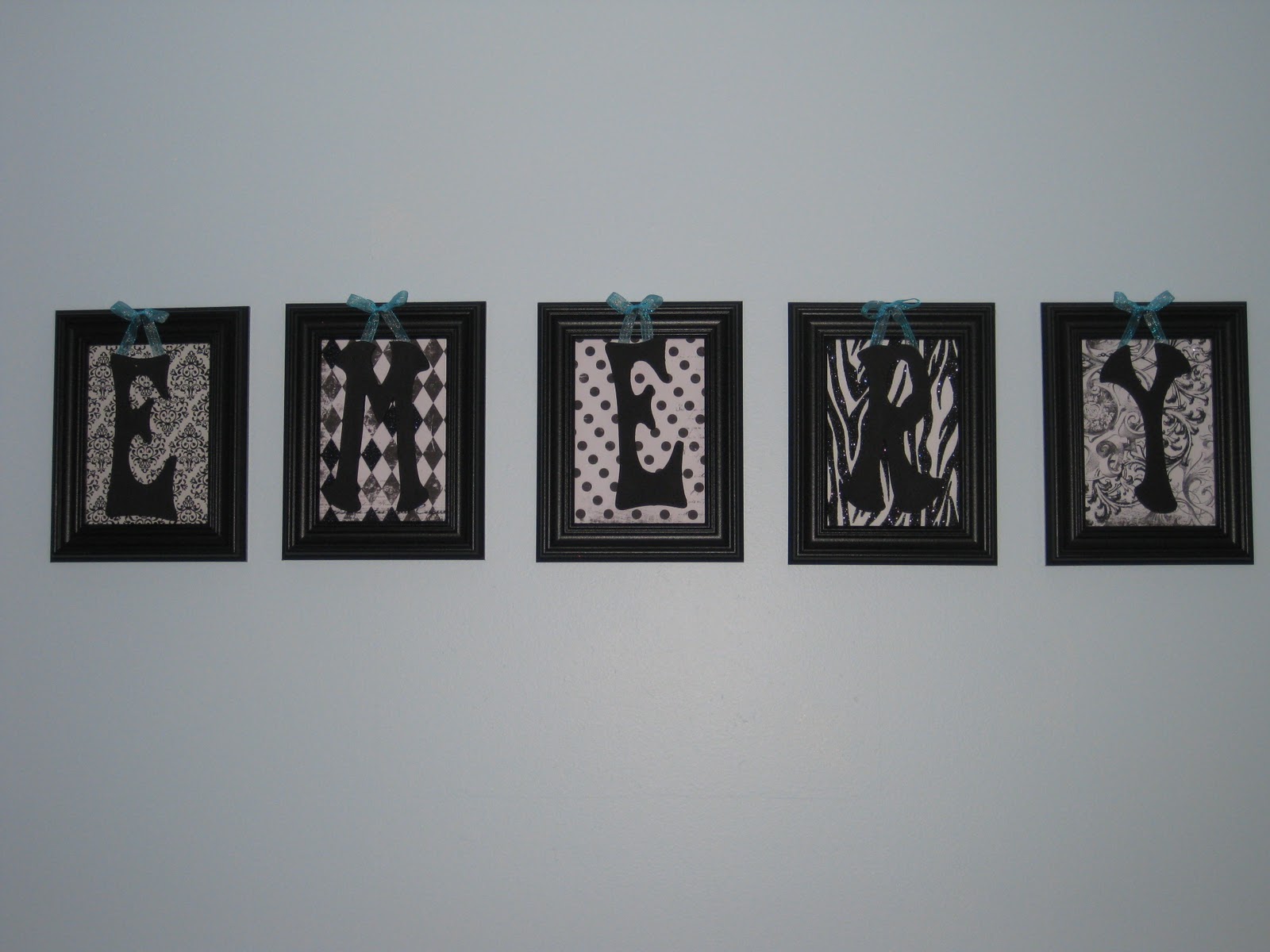 The color is a beautiful icy blue. I accented it with white and black (mainly zebra print). I still need to spray paint her bed and her dresser black. (Now that I've done my bathroom cabinets, I'm much more enthusiastic!) I also made her name to match the new decor. And all of this looks sooooo much better in person!!